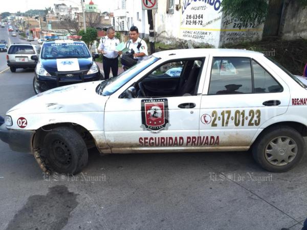 Al lugar del accidente arribó un agente de Vialidad Tepic y el guardia de seguridad intentó darse a la fuga, pero al no poder lograrlo, trató de golpear al agente, quien solicitó apoyo.