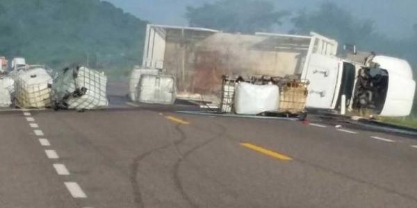 La mañana de este sábado un tráiler que circulaba sobre la autopista Tepic Mazatlán, transportando ácido sulfúrico, volcó y derramó la peligrosa sustancia.