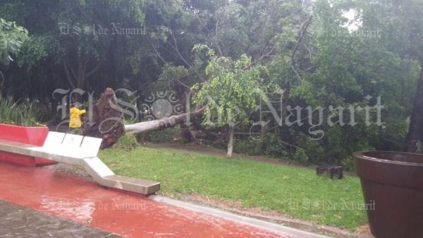 Una torrencial lluvia que cayó la tarde de este sábado en la capital nayarita, dejó severas inundaciones en varios puntos de la ciudad.
