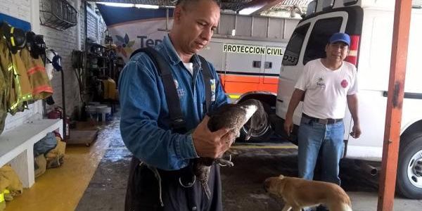 La mañana de este lunes personal de Protección Civil de Tepic, rescataron de las calles de Ciudad del Valle un ave, la cual se encontraba en peligro ante el riesgo de ser atacada por animales de otro tipo o atropellada por los vehículos que transitan en la zona.