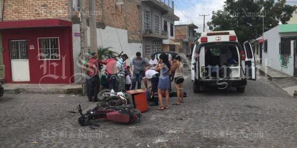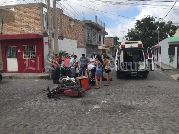 Dos jóvenes motociclistas protagonizaron un accidente en la colonia Puerta de la Laguna, en Tepic.