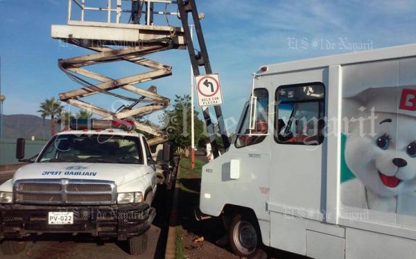 El camión de Bimbo continuó su marcha, y terminó estrellándose contra el poste de un semáforo, dañándolo.