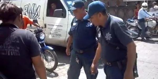 Abusivo policia tumbo a un señor enfermo k iba en busca de trabajoLo queria arrestar#en el centro de tepic#publiquen