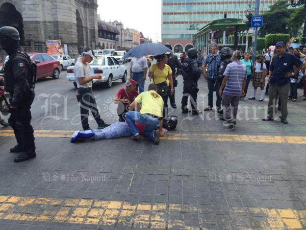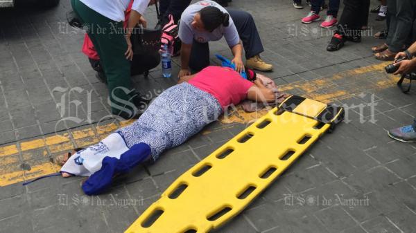 La tarde de este miércoles el centro de Tepic fue el escenario de un accidente vial donde una mujer resultó lesionada.