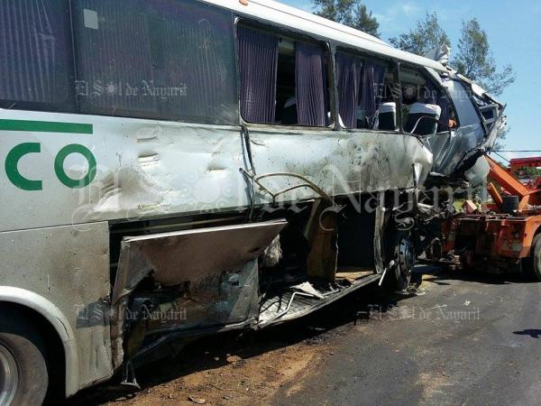 El fatal encontronazo, donde una persona perdió la vida y al menos cuatro más resultaron lesionadas, tuvo lugar a la altura del kilómetro 33+200, punto hasta donde arribaron elementos de la Cruz Roja quienes brindaron los primeros auxilios a los lesionados y los trasladaron distintos nosocomios en Compostela y Tepic.
