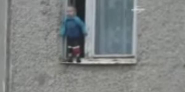 Un niño, de no más de dos años de edad, fue grabado por vecinos de un edificio de departamentos de alrededor de 10 pisos, jugando afuera de la ventana de su vivienda en Rusia.