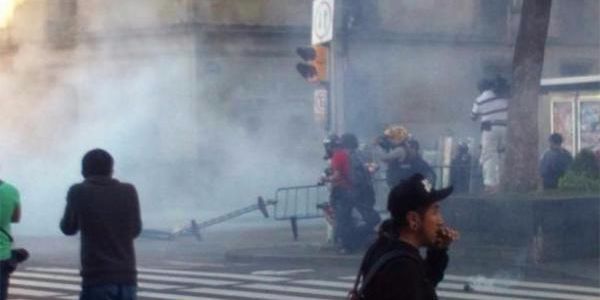 Los hechos ocurrieron la tarde de este viernes en la Ciudad de México, cuando los encapuchados comenzaron a arrojar bombas molotov y botellas de vidrio a los uniformados, quienes respondieron la agresión con gas lacrimógeno.