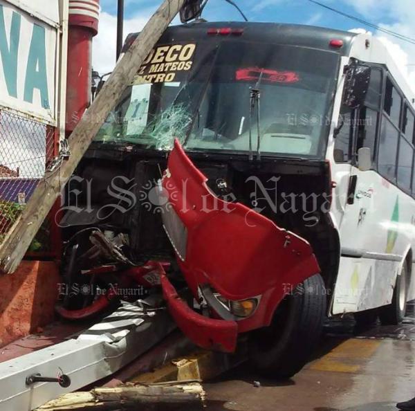 Este lunes un camión del transporte público se estrelló contra un poste y un semáforo en la colonia H. Casas; al parecer intentaba rebasar a un vehículo rojo... Más información aquí: http://www.elsoldenayarit.mx/nota-roja/38564-camion-se-estrella-contra-poste-y-semaforo-en-colonia-h-casas-hay-10-lesionados