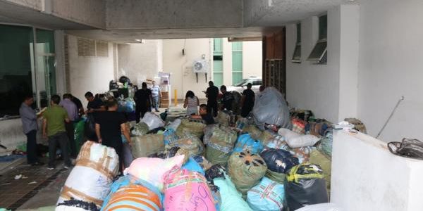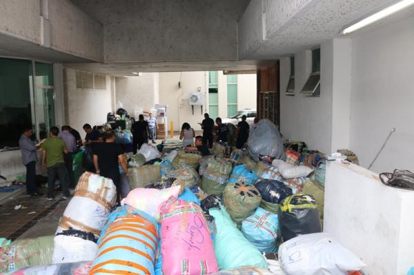 Durante dicha revisión, los agentes federales se percataron de que a bordo del vehículo sólo viajaban el conductor y otras dos personas; además al interior de la unidad había 167 bultos que contenían ropa, calzado, perfumes, accesorios, maquillaje, entre otros artículos, con marcas apócrifas y algunos de procedencia extranjera, los cuales son más de 20 mil artículos.