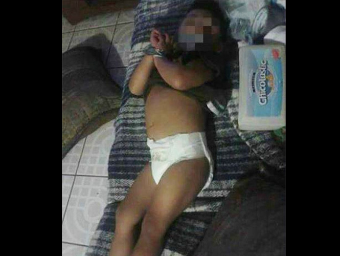 Desde las primeras horas de este domingo comenzó a difundirse la imagen del pequeño Gerardo en pañal, atado de pies y manos con cinta color gris así como amordazado.