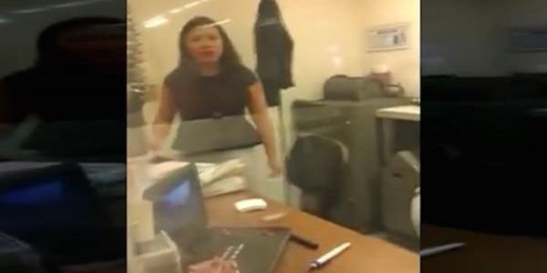 Posteriormente, el hombre que graba le pide a la mujer que continúe despachando a los demás usuarios que esperan para comprar boletos, a lo que ella responde: Por tu culpa idiota. Por tu culpa imbécil.