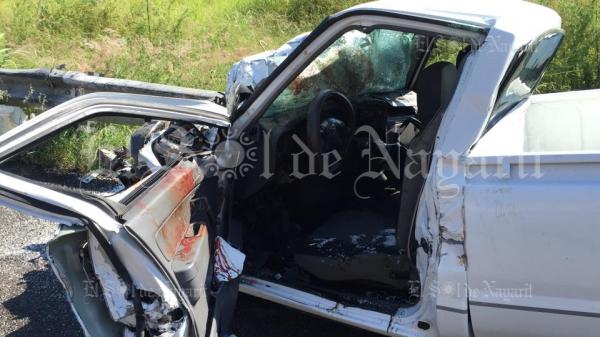 Debido al fuerte impacto, la camioneta Ranger salió proyectada hacia la barrera de contención, fuera de la cinta asfáltica.
