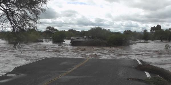 El desbordamiento de la presa San Blas causó que tres vehículos fueran arrasados por la corriente, además de animales y bardas, informó el diario Excélsior.
