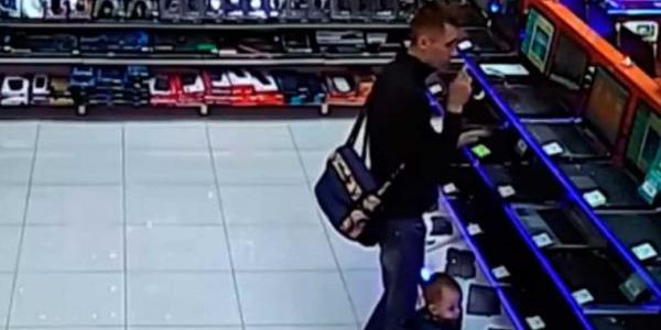 En la grabación de las cámaras de seguridad del comercio, ubicado en Chelyabinsk, Rusia, se aprecia el momento en que el hombre observa las computadoras portátiles y súbitamente se guarda una entre sus ropas.