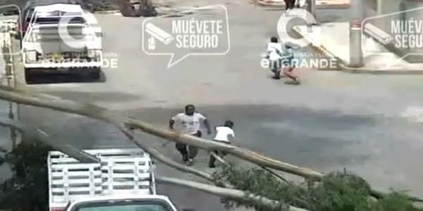 Un impactante video fue publicado en YouTube, donde se observa el momento en el que un hombre y un menor de edad, reaccionan inmediatamente cuando un enorme árbol cae sobre la calle, logrando resultar ilesos.