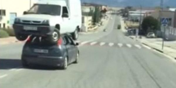 La camioneta podría colapsar con su peso al auto, pero el conductor decidió arriesgarse, por lo que tras difundirse el video las autoridades han expresado su rechazo a esta temeraria actuación, por lo que ambos hombres podrían ser multados con al menos 500 euros y les retirarían su carnet de conducir.