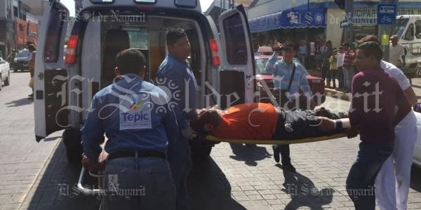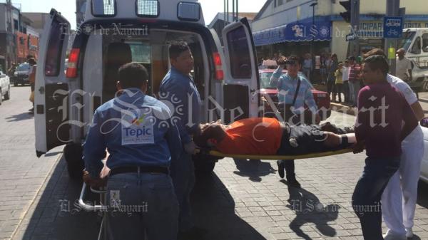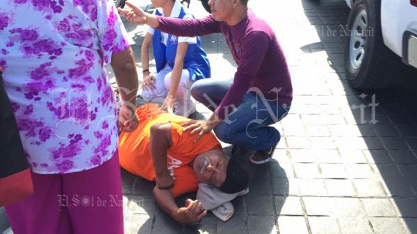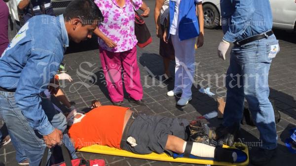 Un adulto mayor resultó lesionado luego de ser atropellado por una unidad de transporte urbano en calles del centro de Tepic.