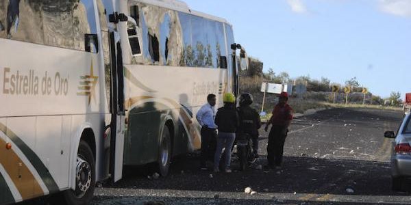 En la grabación se escuchan las voces de los estudiantes que piden al chofer que les impida el paso y al momento en que uno de los vehículos de las fuerzas de seguridad estatales empareja al autobús, uno de los policías rompe el vidrio con su tolete y otros dispara un gas lacrimógeno al interior del camión.