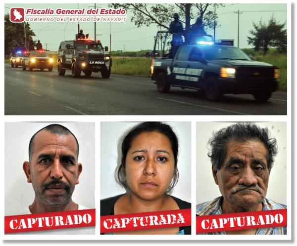 Tras una investigación por parte de elementos de la Policía Nayarit División Investigación, fueron detenidos Eva Yadira Guardado Cortez, de 32 años de edad, Roberto Pinedo Ortiz, de 45 años, y Audel Cruz, de 61 años.