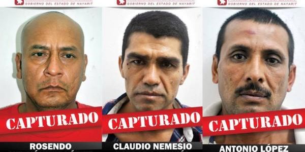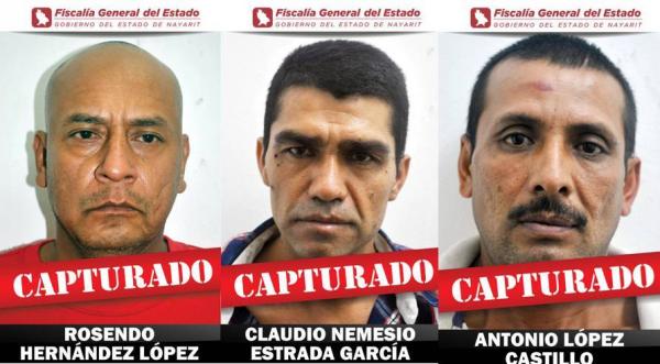 Además de Antonio López Castillo, de 41 años, originario y vecino de Pantanal; Rosendo Hernández López, de 43 años, originario y vecino de Xalisco; y Claudio Nemesio Estrada García, alias El Papi, de 37 años, originario y vecino de Pantanal; todos acusados de secuestrar a una joven de 22 años de edad el pasado 3 de diciembre.