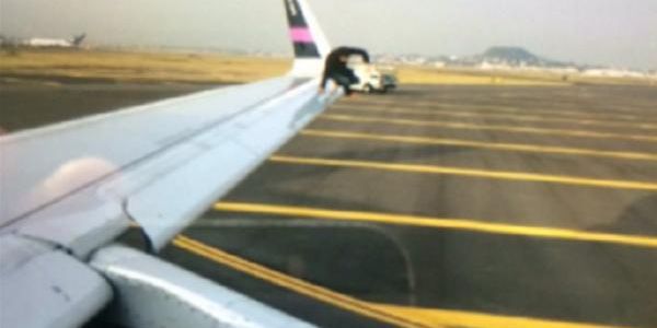 El pasajero, cuya identidad no ha sido revelada, saltó del avión por un ala de la aeronave y después fue detenido por elementos de la Policía Federal.