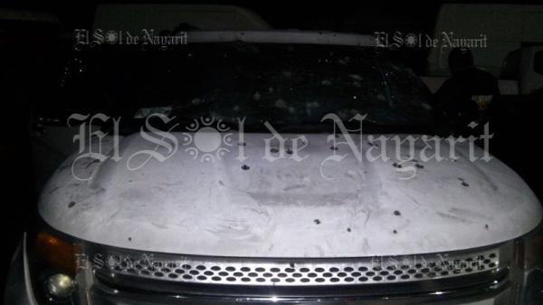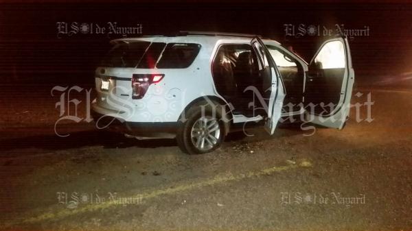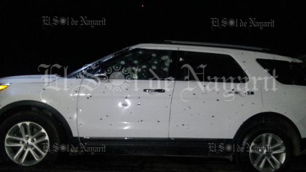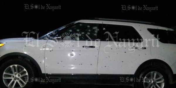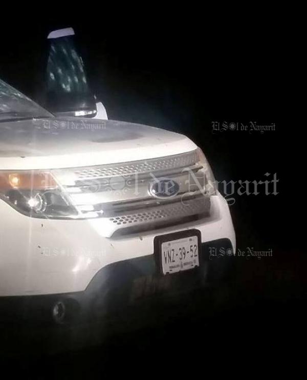 Vecinos del lugar rápidamente alertaron a las autoridades, haciéndose presentes elementos de la Policía Nayarit, quienes corroboraron que en el lugar fue abandonada una camioneta Ford Explorer color blanca modelo 2014, con placas VN-39-52, con placas del estado de Sinaloa,que presentaba una importante cantidad de impactos de bala, así como rastros de sangre en su costado izquierdo.