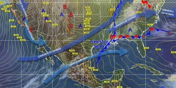 Por otro lado, el SMN pronosticó temperaturas de 35 a 40 grados Celsius en Jalisco, Colima, Michoacán, Guerrero, Oaxaca, Chiapas, Tabasco, Campeche, Yucatán y Quintana Roo, así como temperaturas menores a menos cinco grados Celsius con heladas en zonas montañosas de Sonora, Chihuahua y Durango.