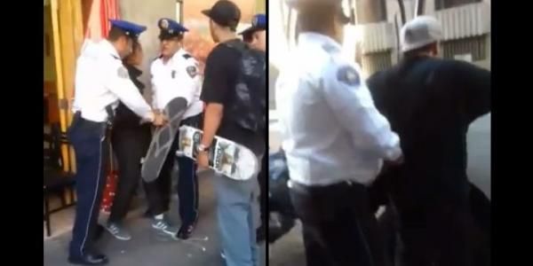 Usuarios de redes sociales difundieron un par de videos donde se exhibe el momento en que policías del Distrito Federal presuntamente detienen de manera arbitraria a un joven que circulaba a bordo de su patineta en el Centro Histórico de la ciudad.