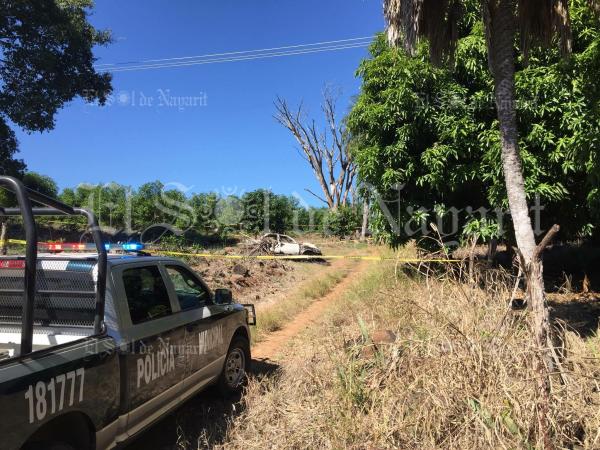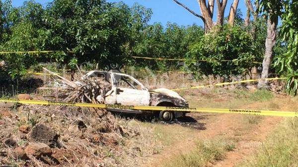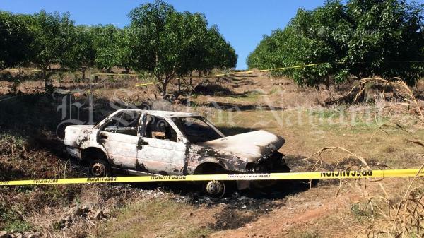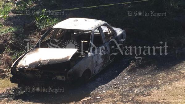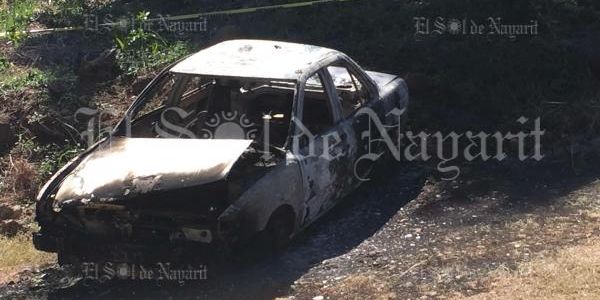 La mañana de este domingo fue localizado un vehículo totalmente calcinado cerca del poblado 5 de Mayo, municipio de Tepic.