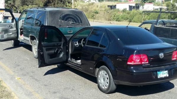 El primero de ellos tuvo lugar en el libramiento carretero, a la altura del punto denominado Cerro Mocho, donde se vieron involucrados cuatro vehículos, una camioneta de la marca Nissan, color blanco, una automóvil Jetta, color negro, una camioneta Toyota tipo RAV-4, color gris y un vehículo de la marca Chevrolet, tipo Cruce, color blanco.