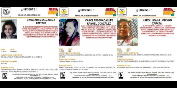 Tres menores de edad han sido reportadas como desaparecidas en este mes de enero, por lo que se ha emitido una Alerta Amber.