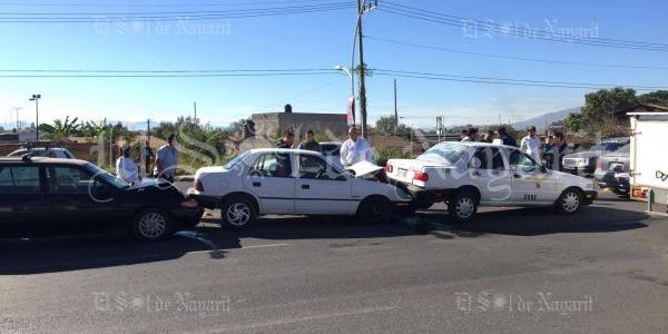 Este último vehículo terminó proyectado contra el taxi, resultando las tres unidades una encima de la otra y dejando como saldo a una mujer lesionada, identificada como Jaqueline Guadalupe Cuevas, de 34 años, quien viajaba en vehículo Shadow.