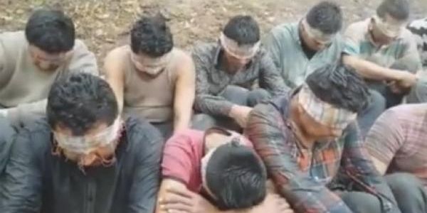 En el centro de la toma se observa a una decena de hombres sentado, con los ojos vendados y vigilados por sujetos armados, mientras la voz señala que su secuestro representa un fuerte golpe que busca llamar la atención de las autoridades.