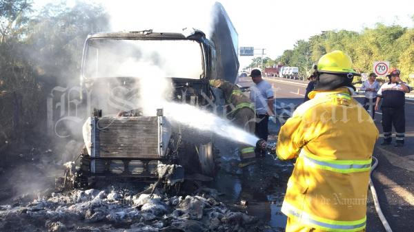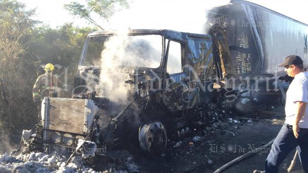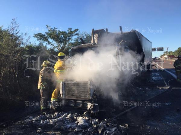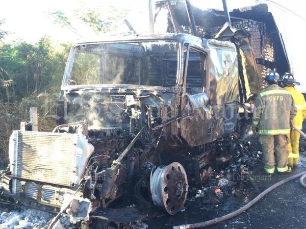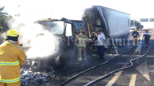 Los hechos ocurrieron metro adelante del crucero de San Blas, cuando la unidad de la marca Volvo comenzó a incendiarse, quedando completamente calcinada la cabina y parte de la caja.