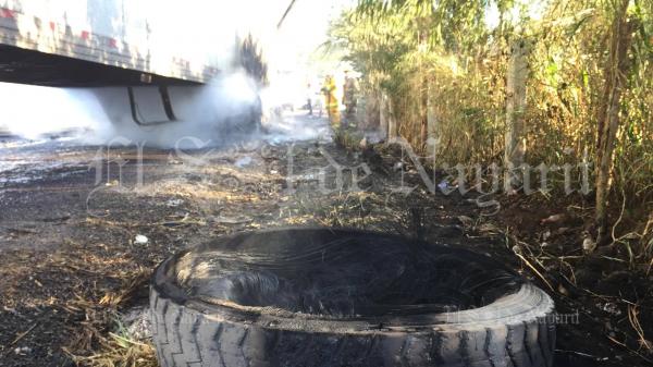 La tarde de este sábado un tráiler que transportaba latas de chiles se incendió casi por completo.