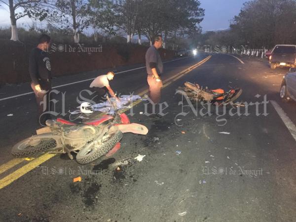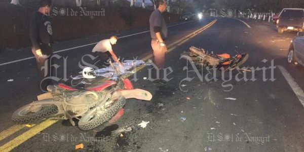 Los hechos ocurrieron en Av. Aguamilpa a la altura del crucero del poblado de Mora donde una motocicleta marca keeway color naranja y marca Honda tipo bros color rojo tuvieron un aparatoso accidente, en el que los conductores de ambas motocicletas resultaron lesionados.