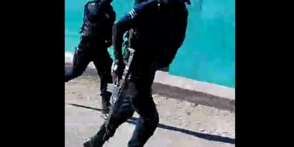 Segundos después se escuchan una serie de detonaciones, tras esto el grupo de hombres armados se da a la fugo.