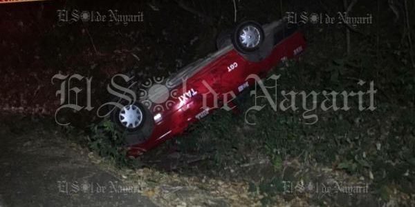 Un terrible accidente se registró la noche de este domingo cuando un taxi color rojo volcó aparatosamente en la carretera Tepic-Aguamilpa, dejando sin vida al chofer de la unidad que conducía en estado de ebriedad.