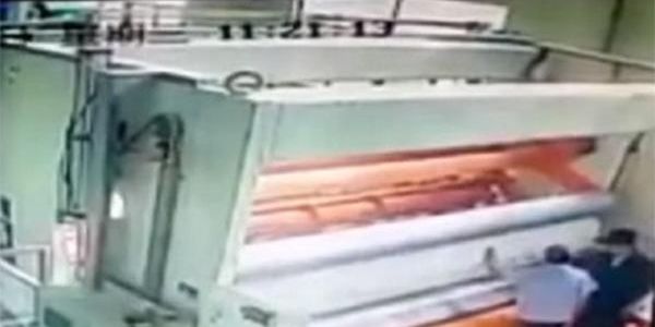 Un video que circula en redes sociales exhibe el momento exacto en que un hombre que se encontraba revisando una máquina de imprenta pierde la vida al ser succionado por el aparato.