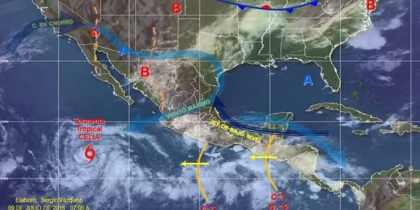 Se prevé que debido a un canal de baja presión en el interior del país y otro en el sureste mexicano, se presentará potencial de intervalos de chubascos con tormentas puntuales fuertes en Chihuahua, Durango, Jalisco, Colima, Michoacán, Ciudad de México, Estado de México, Morelos, Puebla, Veracruz y Chiapas.