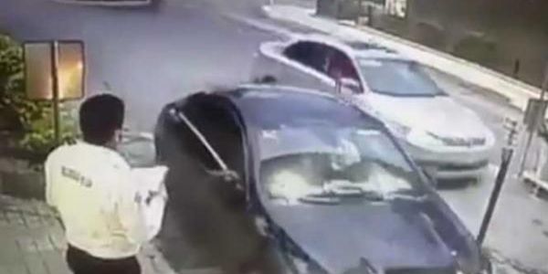 En la grabación se observa al lujo automóvil detenerse en la caseta de vigilancia del complejo residencial para que el guardia registre el ingreso, cuando súbitamente entra a cuadro un segundo vehículo, que en cuestión de segundos se empareja al Mercedes Benz y por el lado del copiloto un hombre le dispara al conductor.