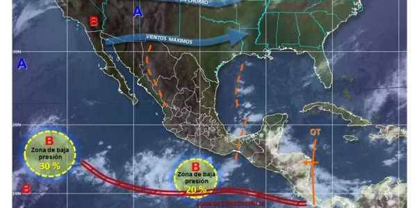Dos canales de baja presión extendidos, uno desde el norte hasta el centro del país y otro desde el sur del Golfo de México hasta el sureste mexicano, generarán tormentas muy fuertes en regiones de Veracruz y Oaxaca.