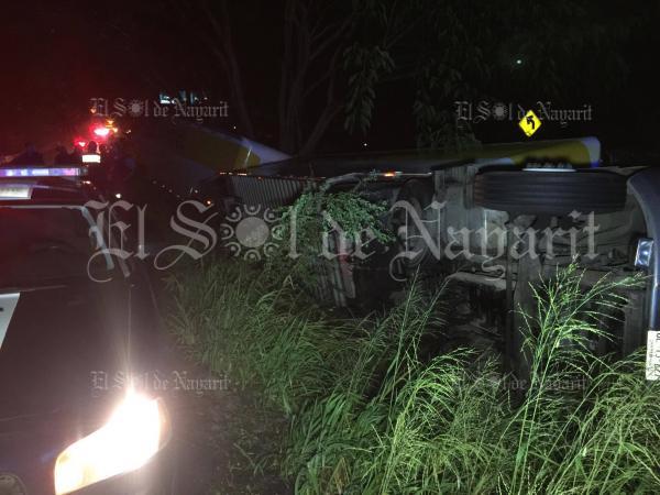 Las primeras horas de este sábado tuvo lugar una aparatosa volcadura en la autopista que conecta la ciudad de Tepic con el crucero del municipio de San Blas.