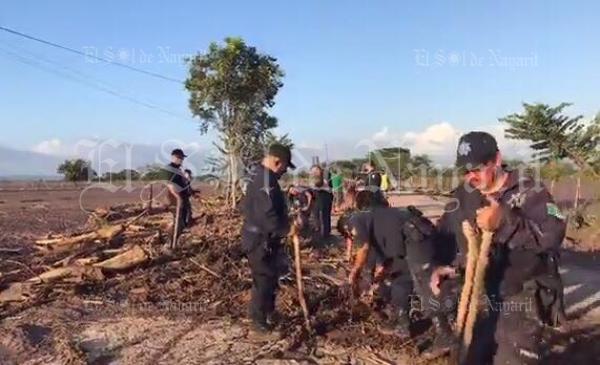 Elementos de Seguridad Pública y Vialidad Tepic, comenzaron esta tarde con las labores para retirar escombros de la carretera hacia La Guasima, en Acaponeta, Nayarit.