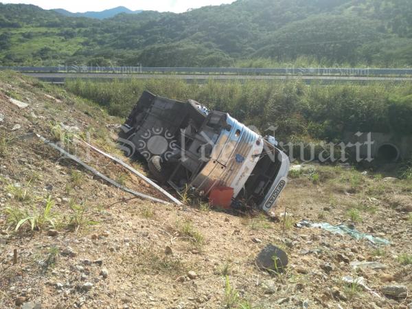 De acuerdo a los primeros reportes, un autobús en el que viajaban al menos 35 personas, cayó a un barranco, provocando la muerte de una persona, así como lesiones en todos los demás tripulantes.