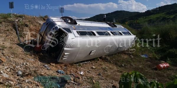 La tarde de este domingo se reportó a los servicios de emergencia un fuerte accidente en la carretera Compostela-Jala, en el kilómetro 55, donde un autobús había caído a un barranco.