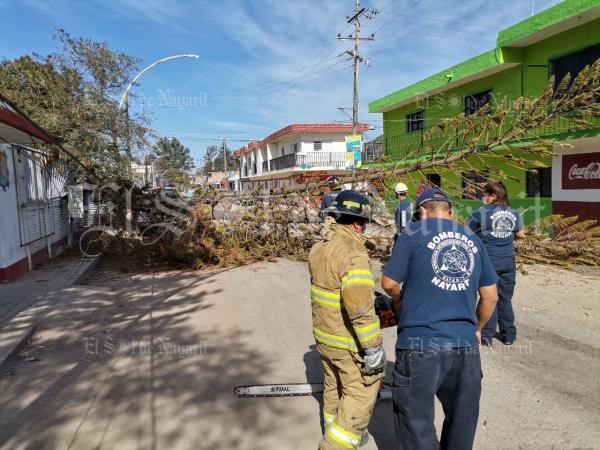 En la colonia Santa Teresita, elementos de Protección Ciudadana y Bomberos realizaron labores para retirar los restos de un enorme árbol.