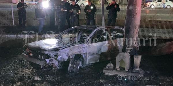 Esta noche se registró un fuerte accidente sobre Libramiento Carretero de Tepic, un auto salió de la cinta asfáltica para enseguida estallar en llamas, provocando graves lesiones al conductor.