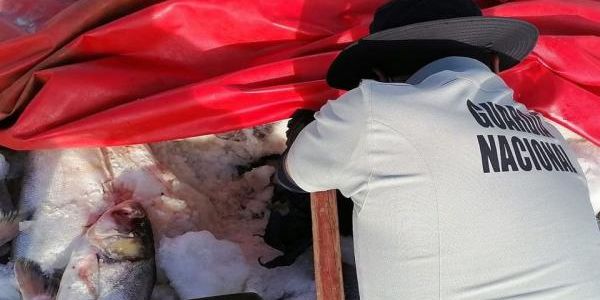 Los elementos de la Guardia Nacional pararon al conductor del camión porque no traía puesto el cinturón de seguridad, por lo que los uniformados realizaron una inspección de rutina: entre el hielo y pescado, estaba la droga oculta en paquetes.