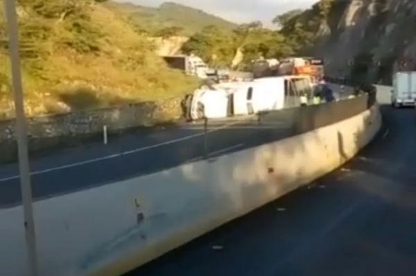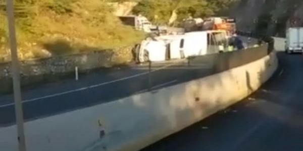 Rápidamente personal de la Guardia Nacional división caminos así como paramédicos se trasladaron al lugar, donde localizaron al chofer de la unidad quien afortunadamente presentaba lesiones leves tras la volcadura, sin embargo la pesada unidad así como la carga mantenían bloqueada la vialidad.